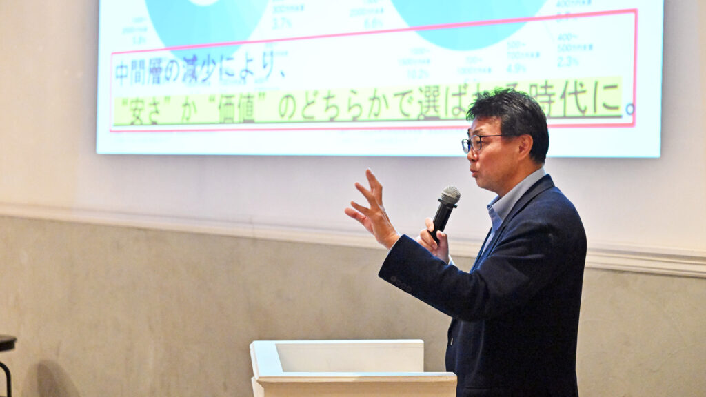 小泉氏は、平均と中央値の差が示す“二極化”を起点に、葬送サービスも「価格」ではなく「想いの設計」で価値を生む時代だと強調。少人数でも故人の世界観に合わせた装飾・演出で高い満足と適正収益を両立できると述べました。事例紹介では、ホール2拠点・18名からスタートした企業が、生花内製化で原価率を約3割まで改善し、出店+「広告費と減価償却費をあわせて売上の10~13%投資」の方針で施工件数600件超へ拡大。コロナ禍では単価下落に対し、原価・販促の見直しと広告配分強化で過去最高益を実現した意思決定を解説しました。